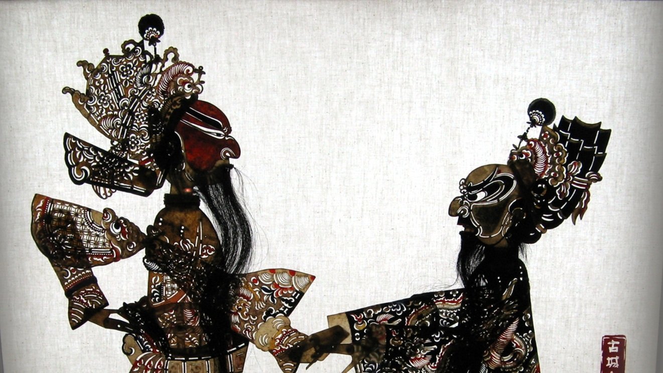Image credit: G41rn8, showing shadow puppets in the Sichuan Provincial Museum. The puppets depict Guan Yu and Zhang Fei in Romance of the Three Kingdoms.