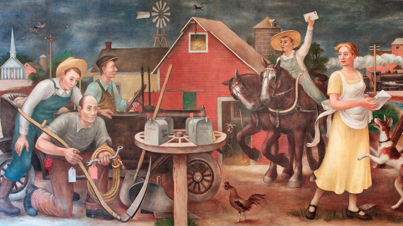 Image credit: Country Post mural by Doris Lee at the Ariel Rios Federal Building, part of the New Deal Federal Art Project, Section of Painting and Sculpture, photographed by Carol M. Highsmith.